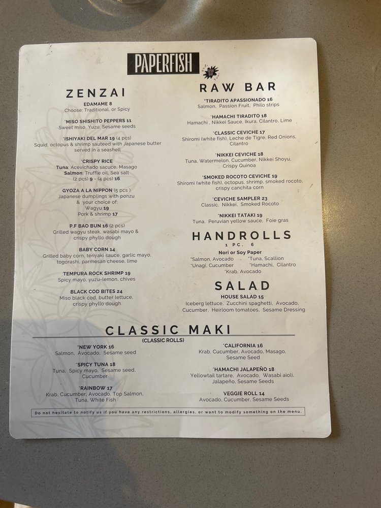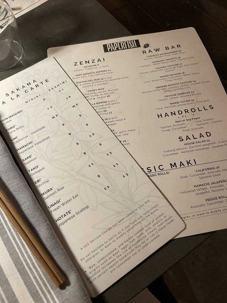 Introducing the menu at Paperfish Sushi, located on the picturesque Española Way in Miami Beach, is a culinary journey worth exploring. This upscale eatery seamlessly blends traditional Japanese flavors with Peruvian influence, creating a unique Nikkei-inspired dining experience.